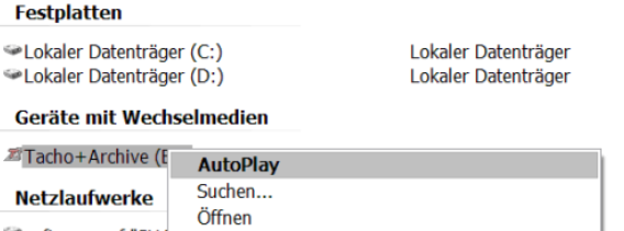 Legen Sie die TachoPlus FreeDriver Installations-CD in das CD/DVD-Laufwerk ein. Falls die CD nicht automatisch startet, gehen Sie über den Arbeitsplatz auf das CD-Rom-Laufwerk und starten Sie die CD manuell über die Funktion ‚Autoplay‘.